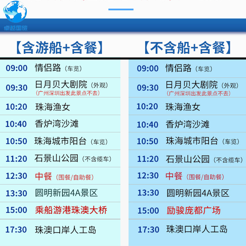 专为商务差旅人士设计,本线路支持从广州、深圳、珠海三大粤港澳大湾区核心城市灵活出发,行程紧凑高效,无需过夜即可完成港珠澳大桥、蓝海豚岛、澳门环岛等标志性景点游览。特别适合利用会议间隙或周末短假快速切换工作与休闲模式,实现‘上午开会、下午观海’的高效度假体验。全程交通接驳顺畅,节省时间成本,最大化差旅价值。