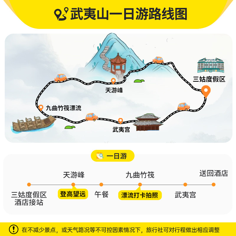 针对独自出差或临时起意的旅行者,本产品支持1人单独预订,无需拼团等待或最低成团人数限制。无论您是因公出差至南平,还是短暂停留中想快速体验当地精华,都能即订即走。行程包含接送、门票与导览,省去独自规划的繁琐,让差旅中的碎片时间转化为高质量的文化度假体验。