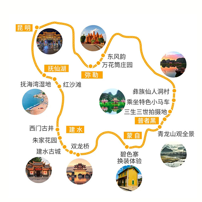 本产品覆盖昆明、红河、曲靖、玉溪、文山五大区域,提供高度灵活的差旅度假组合可能。无论您是从昆明出发赴红河开会,还是在曲靖考察后顺访罗平,均可根据实际行程嵌入1-2个景点。线路设计充分考虑交通接驳与时间成本,避免绕路,确保差旅效率。同时支持个性化调整,真正实现‘因公出行,顺便度假’的现代商旅理想。