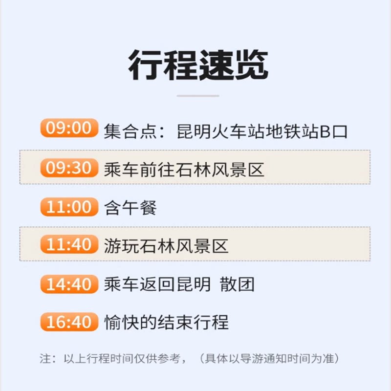 无论您是独自出差还是临时起意探索昆明,本产品支持单人成团预订,无需拼团等待或凑齐人数。差旅中常有临时空档,此设计让您随时下单、随时出发,充分尊重个人时间安排。专业导游全程陪同讲解,确保独自出行的安全性与体验感,让单人差旅不再孤单,反而充满探索乐趣。