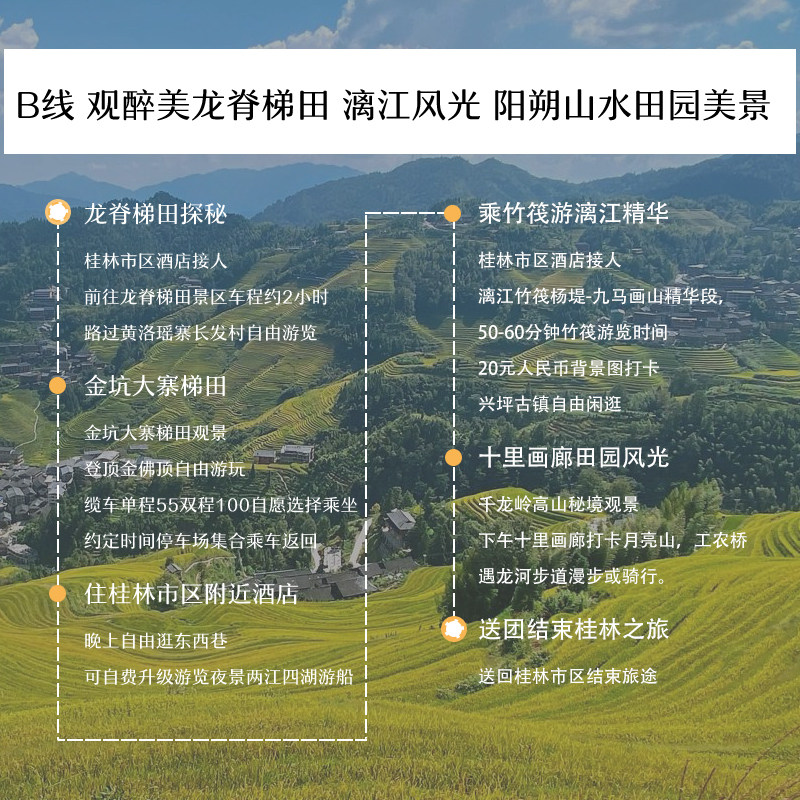差旅高效串联:2天1晚覆盖漓江、阳朔、龙脊三大精华