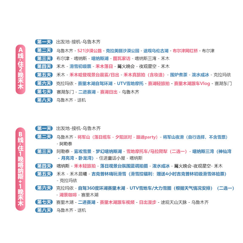 • 差旅主题鲜明:吉克普林滑雪+北疆风光,打造专属冬日IP