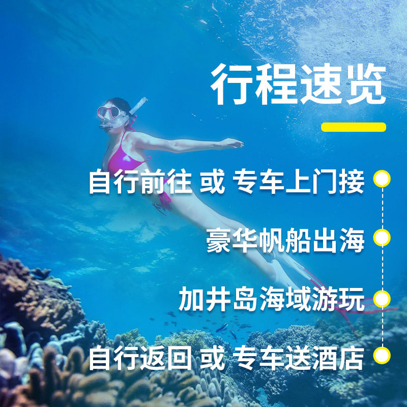 出差也能留下高光时刻!本行程提供专业GOPRO跟拍服务,无论是在加井岛浮潜探索珊瑚礁,还是乘坐帆船驰骋碧海,都能自动捕捉高清动态影像。无需自备设备,差旅结束后即可获得专属旅行视频,让商务出行兼具纪念价值与社交分享亮点。