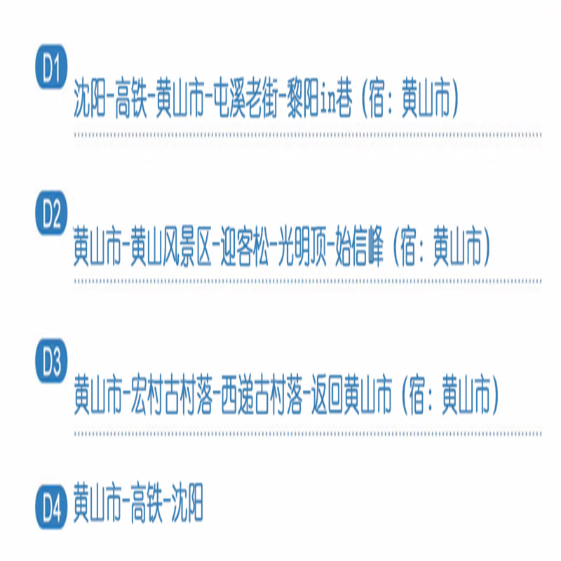 沈阳出发高铁往返 | 黄山+宏村+西递 | 4天3晚跟团游/连住不挪窝沈阳出发高铁往返 | 黄山+宏村+西递 | 4天3晚跟团游/连住不挪窝沈阳出发高铁往返 | 黄山+宏村+西递 | 4天3晚跟团游/连住不挪窝沈阳出发高铁往返 | 黄山+宏村+西递 | 4天3晚跟团游/连住不挪窝
