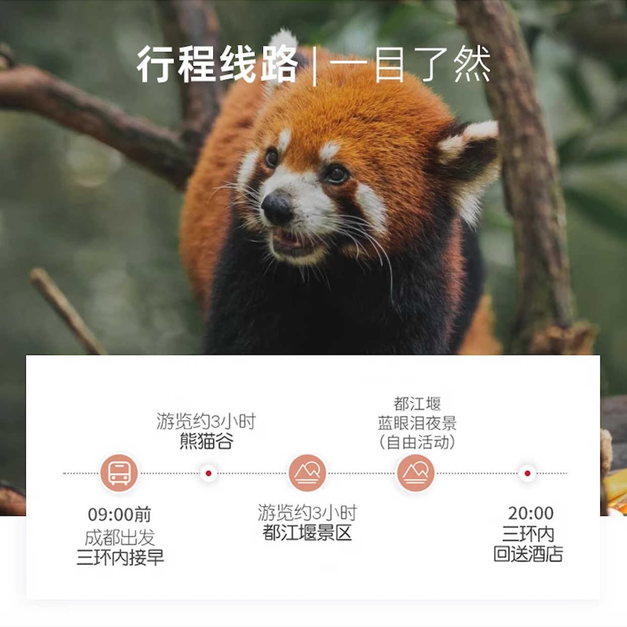 本线路支持1人单独预订,无需拼团等待,特别适合商务差旅人士在紧凑日程中灵活安排短途度假。无论您是独自出差至成都,还是临时决定利用周末放松身心,只需一键下单,即可享受专属的一日纯玩行程。从成都市区出发,轻松覆盖都江堰、青城山、三星堆等世界级景点,省去交通与规划烦恼,让差旅与休闲无缝衔接,高效又惬意。