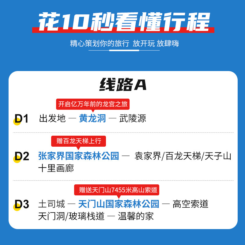 全程纯玩设计,杜绝隐形消费与强制购物环节,确保每一分钟都用于真实景观体验。对于时间宝贵的差旅人士而言,这意味着无需应付推销干扰,可全身心投入天门山云海、黄龙洞钟乳石等世界级自然奇观之中。