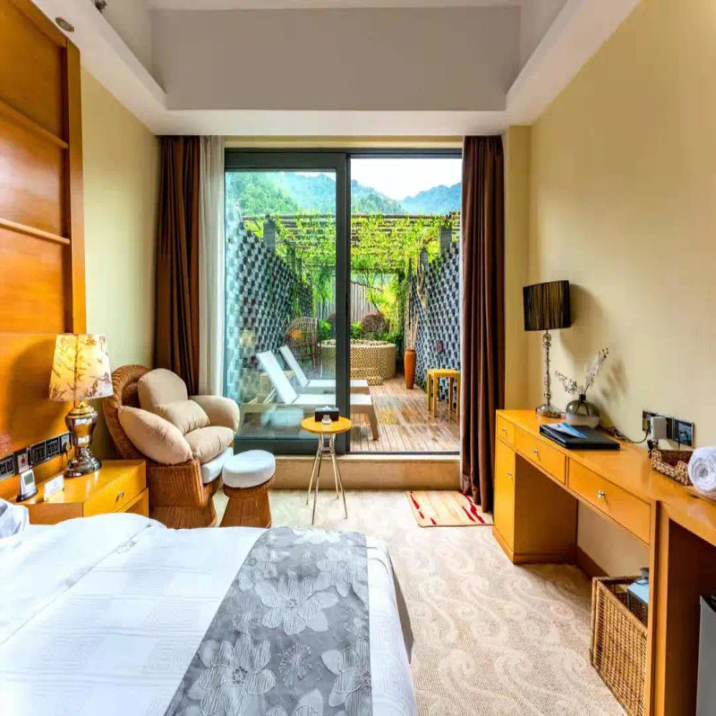 莽山森林温泉酒店将高端住宿与休闲设施高度整合,客房与温泉区、无边泳池等核心体验点距离极近。差旅人士可在结束线上会议或电话洽谈后,立即步入温泉放松身心,无需舟车劳顿切换场景。这种“工作-休憩”一体化的空间布局,赋予用户对时间节奏的完全掌控权,真正实现张弛有度的智慧差旅。