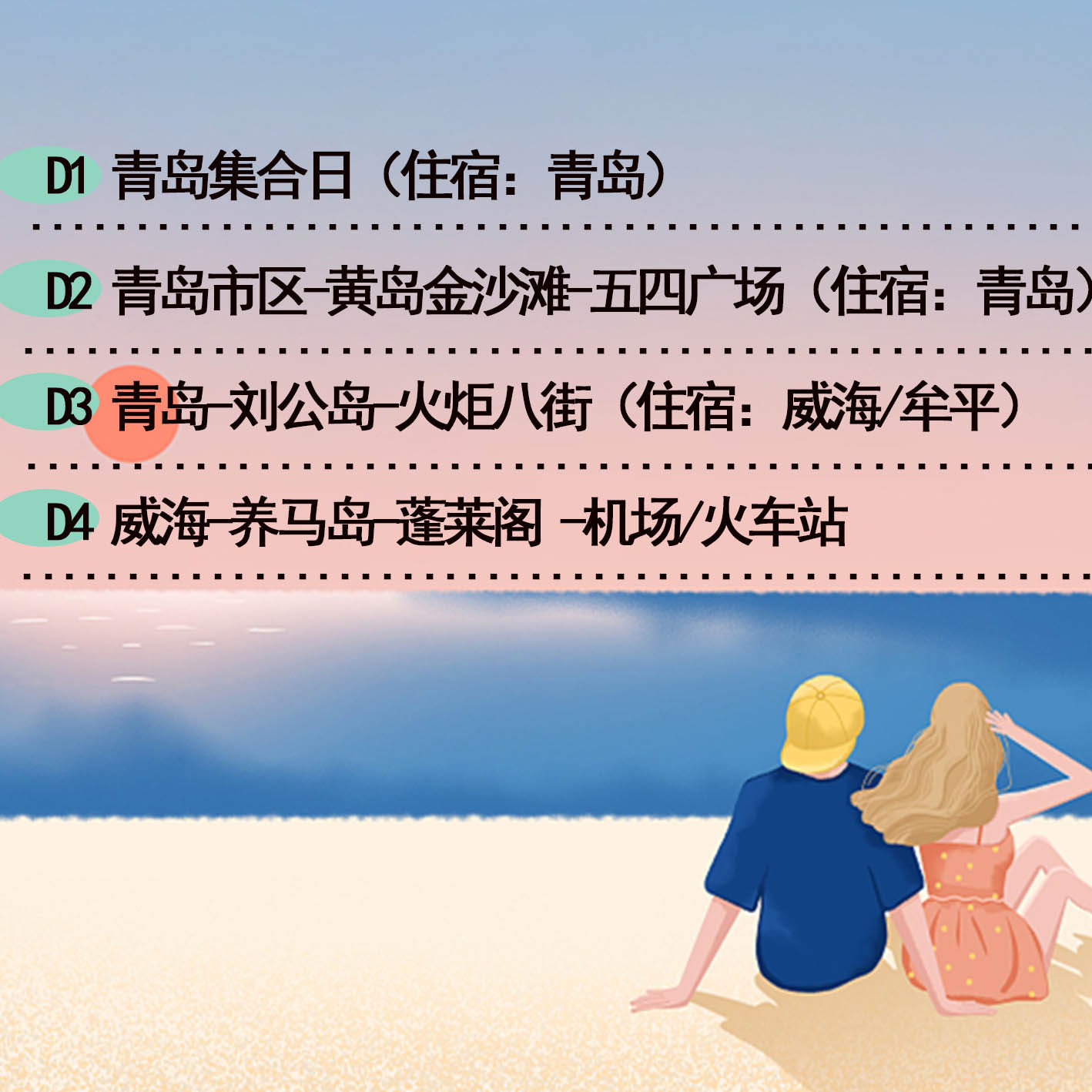 本产品采用4日3晚设计,完美契合“周五出发-周一返岗”的差旅节奏。周四下班后从青岛启程,利用周末深度游玩,周一清晨返回不影响工作。行程节奏张弛有度,既有文化景点参观,也有自由活动时间,让短暂假期也能收获充实体验,告别“假期待着比上班还累”的困境。