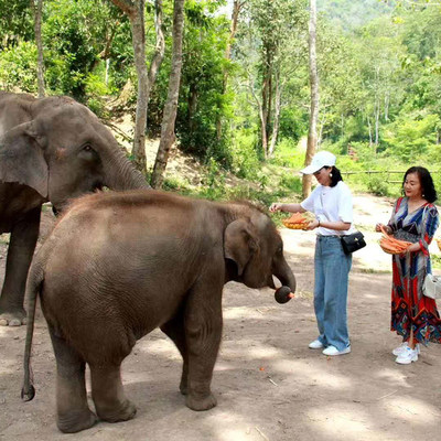 差旅动物互动:喂食大象减压,独特社交体验