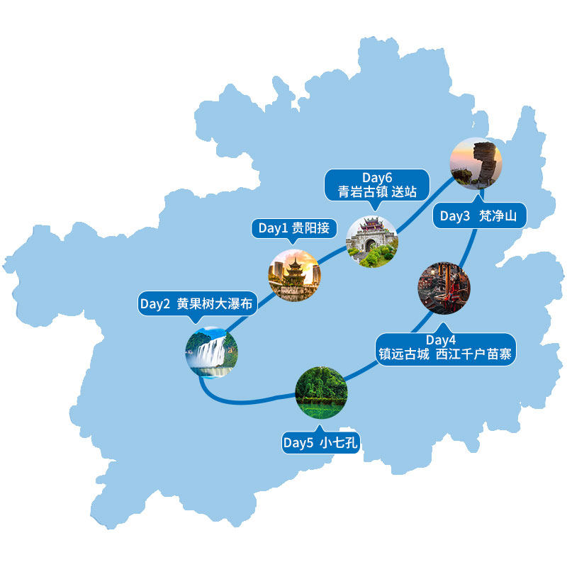 本行程专为差旅人士设计,从贵阳便捷出发,6天5晚高效串联黄果树瀑布、梵净山、荔波小七孔、西江千户苗寨与镇远古镇等贵州核心景点。全程纯玩无购物,省去繁琐安排,让商务出行之余也能深度体验自然奇观与民族风情。无论是独自出差后的小憩,还是错峰度假,都能在紧凑日程中享受高品质旅行体验。