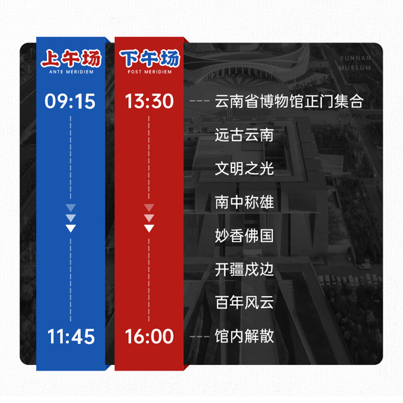 在高强度商务节奏中,走进博物馆即是步入一片精神绿洲。本行程通过“大咖说”专业讲解,将冰冷的文物转化为生动的历史故事,涵盖古滇国祭祀、茶马古道贸易、少数民族服饰演变等精彩内容。2.5小时的沉浸体验,不仅缓解差旅疲劳,更能激发灵感与思考,让文化成为您下一场会议或谈判的隐性助力。