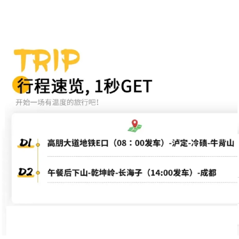 专为差旅人群打造的2日游行程,从成都出发当日抵达牛背山,次日观日出后返程,不占用过多工作时间。行程节奏张弛有度,既满足户外徒步、登高望远的休闲需求,又避免长途跋涉带来的疲惫,让商务出行与自然度假无缝衔接,实现效率与放松的双重平衡。