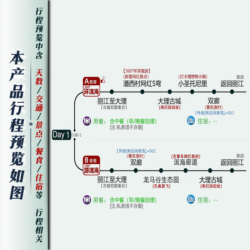 本线路支持“1人可订”,特别适合商务出差途中临时起意的休闲度假需求。无论您是独自出差至丽江,还是会议间隙想短途放松,无需等待拼团或凑人数,随时下单即可出发。行程安排紧凑高效,一日内畅游大理洱海精华景点,兼顾工作与休闲,真正实现差旅与度假的无缝衔接。