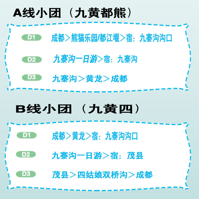 本线路专为兼顾差旅与度假需求的旅客设计,从成都东站搭乘高铁快速抵达阿坝州核心景区附近站点,全程交通便捷、时间可控。特别适合在完成商务任务后即刻开启短途深度游的职场人士。高铁动车组合减少舟车劳顿,三日行程紧凑却不仓促,让您在有限假期中高效切换工作与放松模式,实现真正的“差旅+度假”无缝融合。