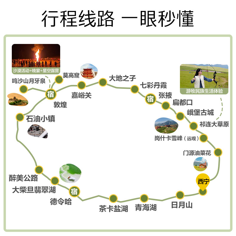 行程以西宁为起点,串联酒泉、张掖、嘉峪关、海北、海西等青甘大环线精华城市,路线设计贴合差旅节奏。无论是从西宁中转前往甘肃,还是结束公务后就近开启旅程,交通衔接顺畅,节省中转时间,让您的差旅与度假无缝融合。
