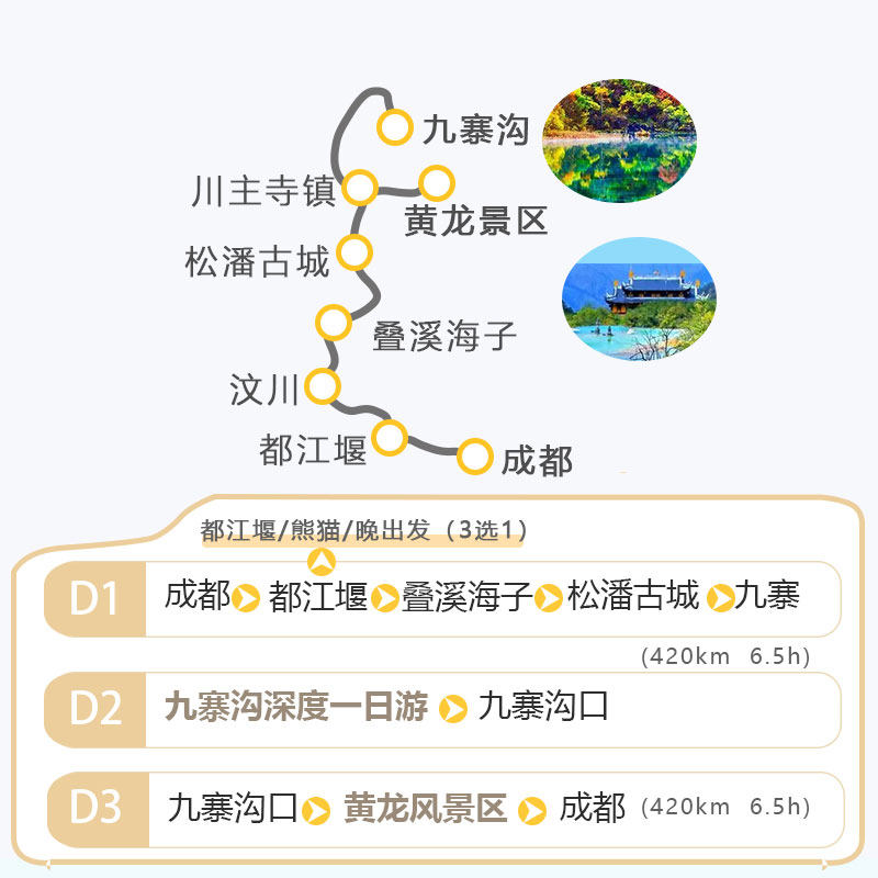 • 差旅无忧:成都出发直抵阿坝九寨沟,3天2晚高效行程