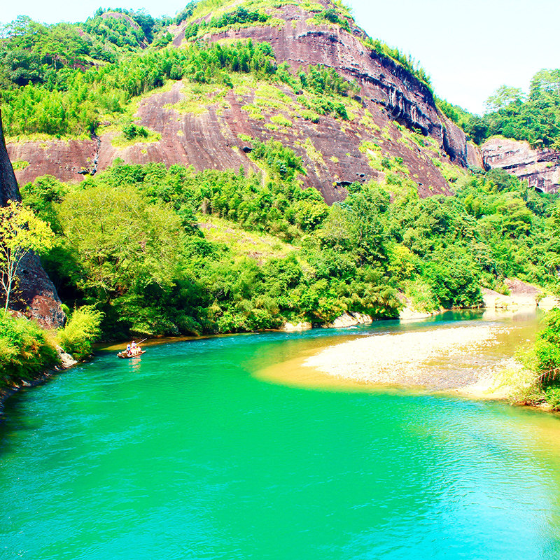 作为武夷山标志性体验,九曲溪竹筏漂流被纳入行程核心环节。乘一叶竹筏顺流而下,两岸丹山碧水、奇峰倒影尽收眼底,90分钟的慢节奏旅程让长期处于快节奏工作状态的差旅人士得以彻底放松身心。此项目已含在费用中,无需额外预约,省去自行安排的繁琐。