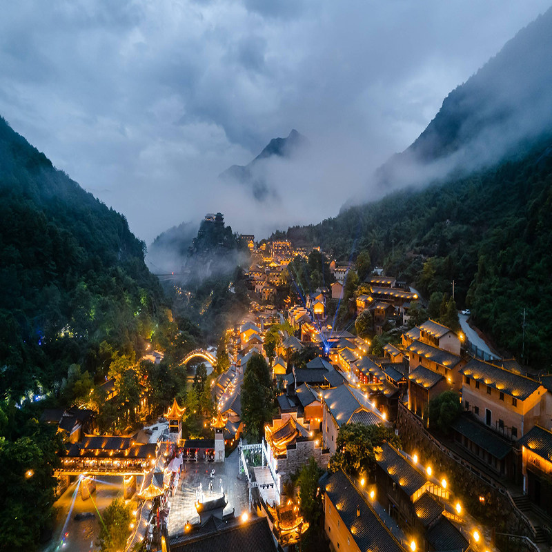 望仙谷以其幽深峡谷、飞瀑流泉和千年道家文化氛围,成为都市差旅族释放压力的理想目的地。白天漫步三叠水、三口锅等自然奇观,感受大自然的静谧力量;夜晚则被璀璨灯光点亮的悬空民宿、古街巷弄所包围,光影交错间仿佛步入仙侠世界。这种白昼与黑夜双重感官体验,有效缓解高强度差旅带来的身心疲惫。