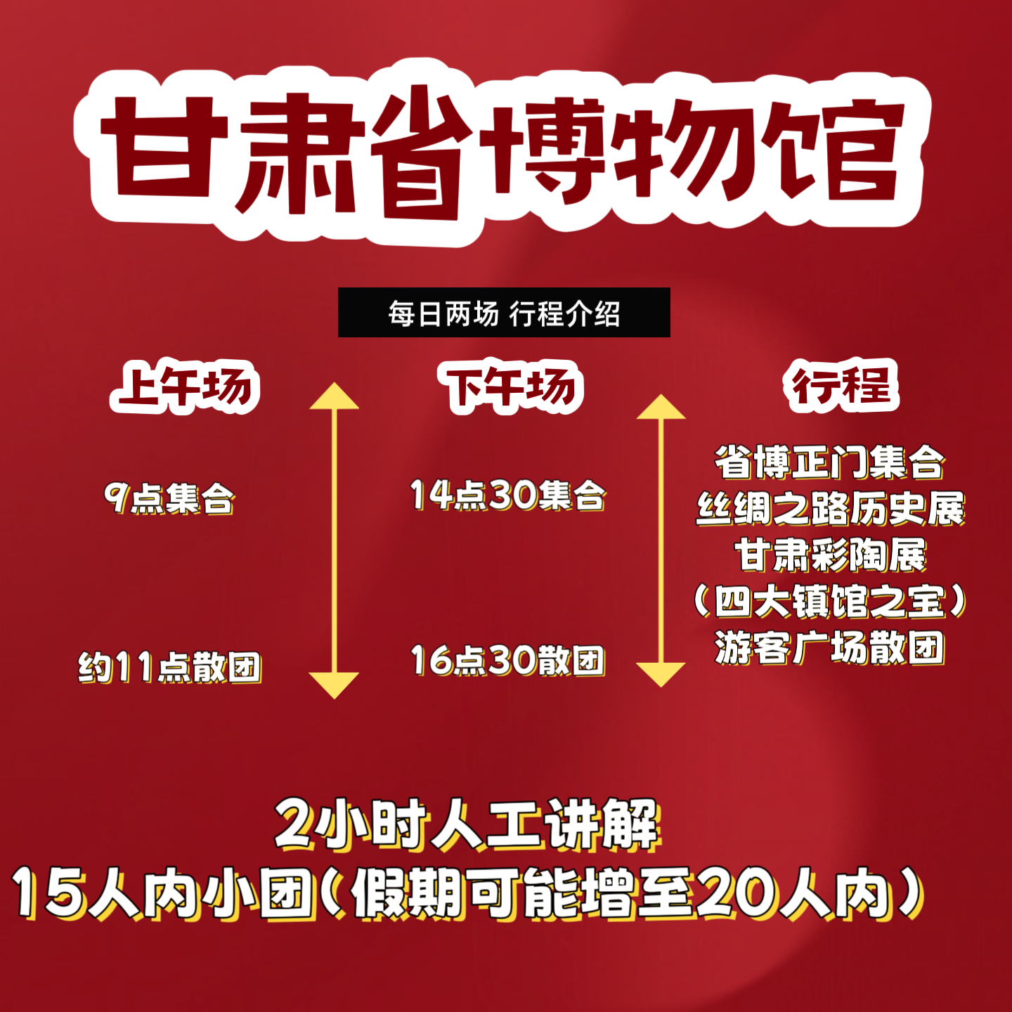 专为时间紧张的差旅人群优化,全程仅需2小时,上午或下午均可安排,完美嵌入会议间隙、航班前后或酒店入住空档。无需长途奔波,博物馆位于兰州市中心,交通便利。结束参观后可继续投入工作或前往机场车站,真正做到“短时高效、轻松无压”,让文化体验成为差旅的加分项而非负担。