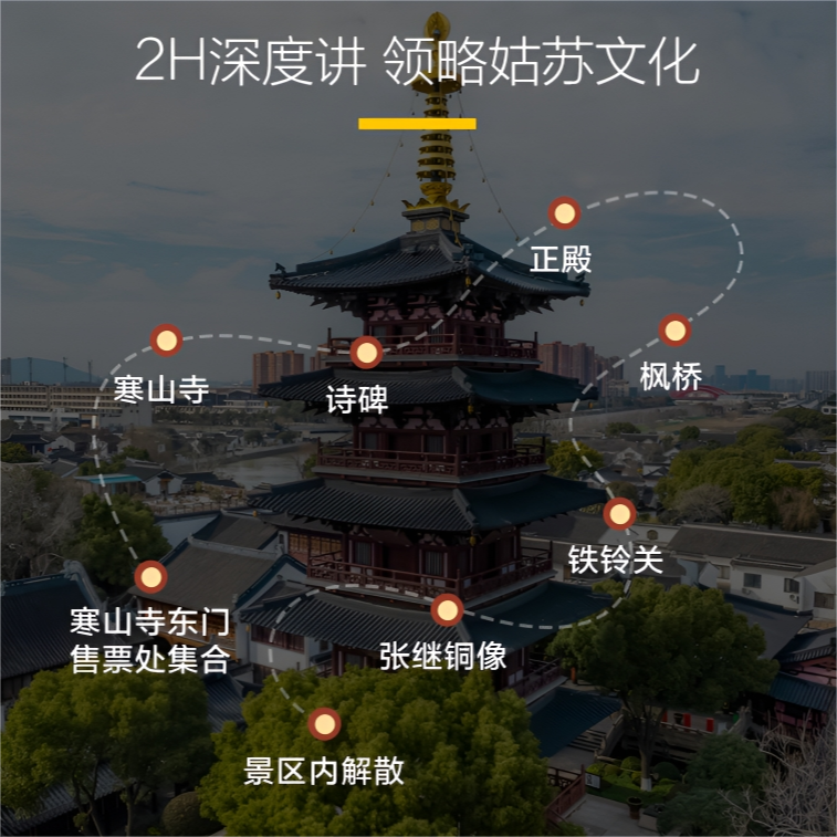 除单人预订外,本半日游也适合小型商务接待或客户陪同。在古寺钟声与枫桥诗意中开展非正式交流,营造轻松而有格调的社交氛围。2小时行程不显冗长,却足以展现东道主的文化品位,是差旅中兼具礼仪与深度的待客之选。