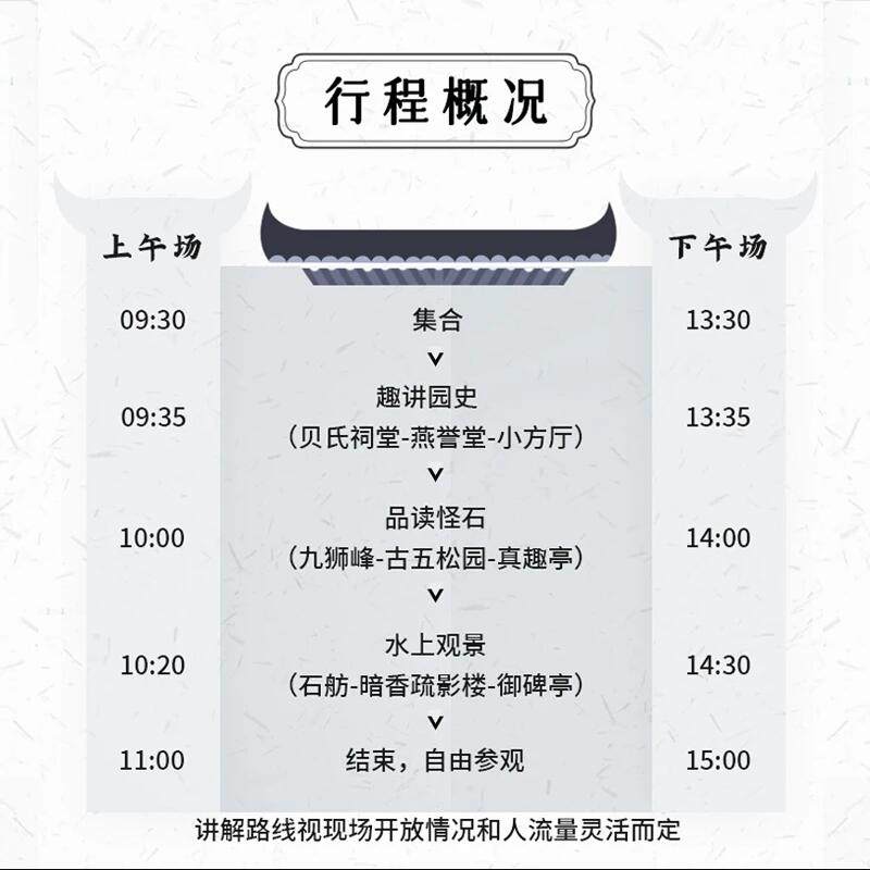 专为差旅人士设计,本产品支持1人单独预订,无需拼团等待,极大提升行程安排的灵活性。在苏州出差或短暂停留期间,只需1.5小时,即可带孩子深入狮子林,体验金牌讲解带来的沉浸式人文之旅。无论是上午会议结束后的午间时光,还是傍晚工作收尾后的亲子时光,都能无缝衔接,让差旅不再枯燥,兼顾效率与家庭陪伴。