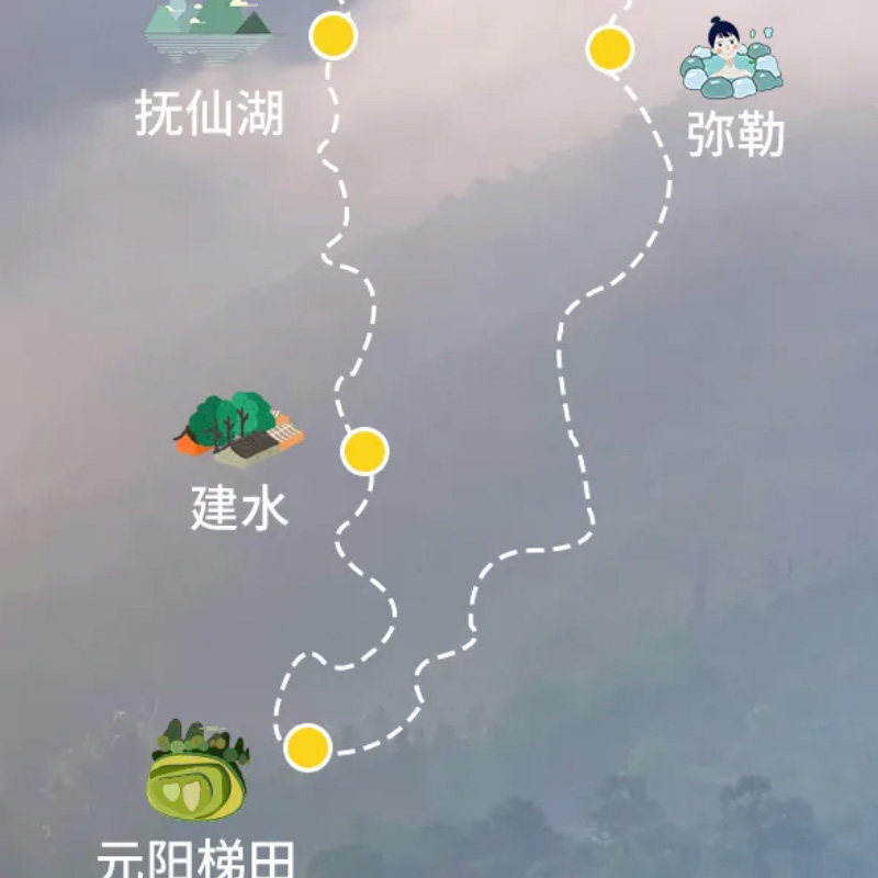 短短5天内串联昆明、弥勒、建水、元阳、抚仙湖五大目的地,涵盖自然奇观、历史古镇、艺术园区与高原湖泊,最大化利用有限假期。对时间宝贵的差旅人士而言,无需多次请假即可完成一次高浓度文化与自然之旅,真正实现‘短假长体验’的高效度假模式。