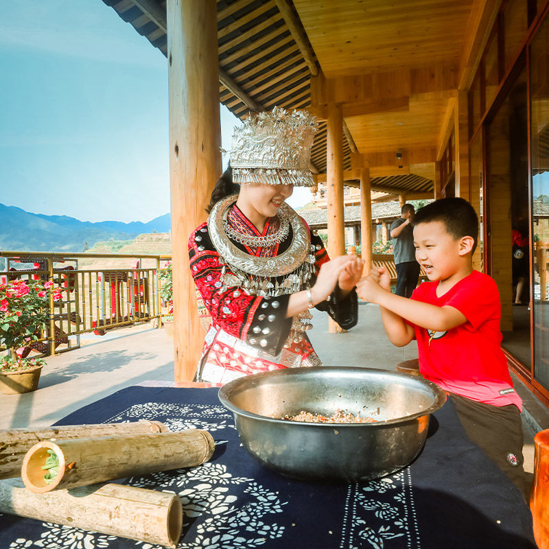 区别于标准化酒店,本产品精选阳朔或龙脊梯田区域的特色吊脚楼民宿,让您在差旅之余沉浸于传统建筑美学与山居生活。木质结构、临水而建、推窗见山,每一处细节都为疲惫的商务旅客提供心灵休憩空间。从佛山、中山等邻近城市出发,仅需数小时即可切换至诗意栖居。