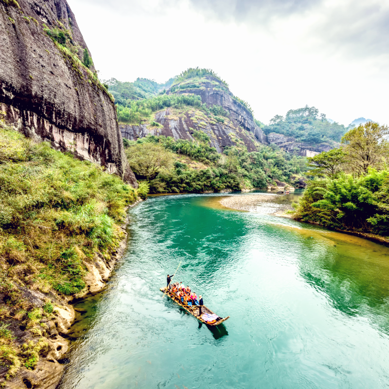 楠溪江清澈见底,两岸青山如黛,乘竹筏顺流而下,仿佛置身水墨长卷。这一‘乘船游览’与‘竹筏漂流’相结合的体验,节奏舒缓却意境悠远,非常适合差旅人士暂时抽离繁忙事务,静心观景、放空思绪。水波轻摇间,压力悄然消散,身心得以真正放松,为返岗积蓄充沛精力。