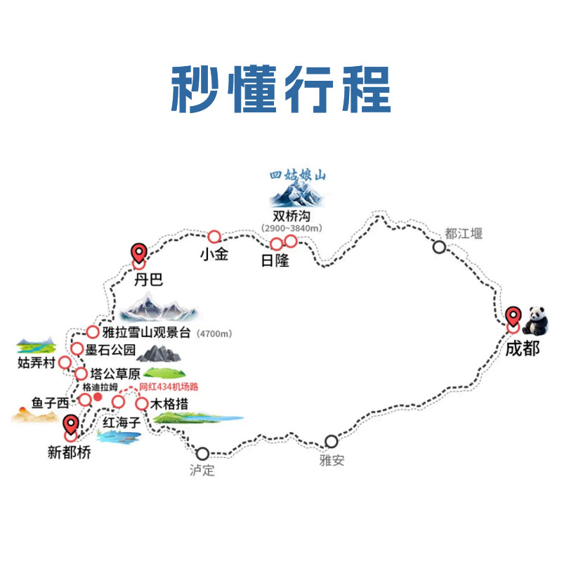 本线路支持1人独立成团,特别适合商务人士或独自出差途中想顺道放松的旅客。无需等待拼团,随时出发,行程安排自由度高,有效节省差旅时间成本。无论是从成都还是重庆出发,均可便捷衔接川西小环线,让您的公务之余轻松拥抱自然美景,实现高效差旅与深度度假的完美结合。