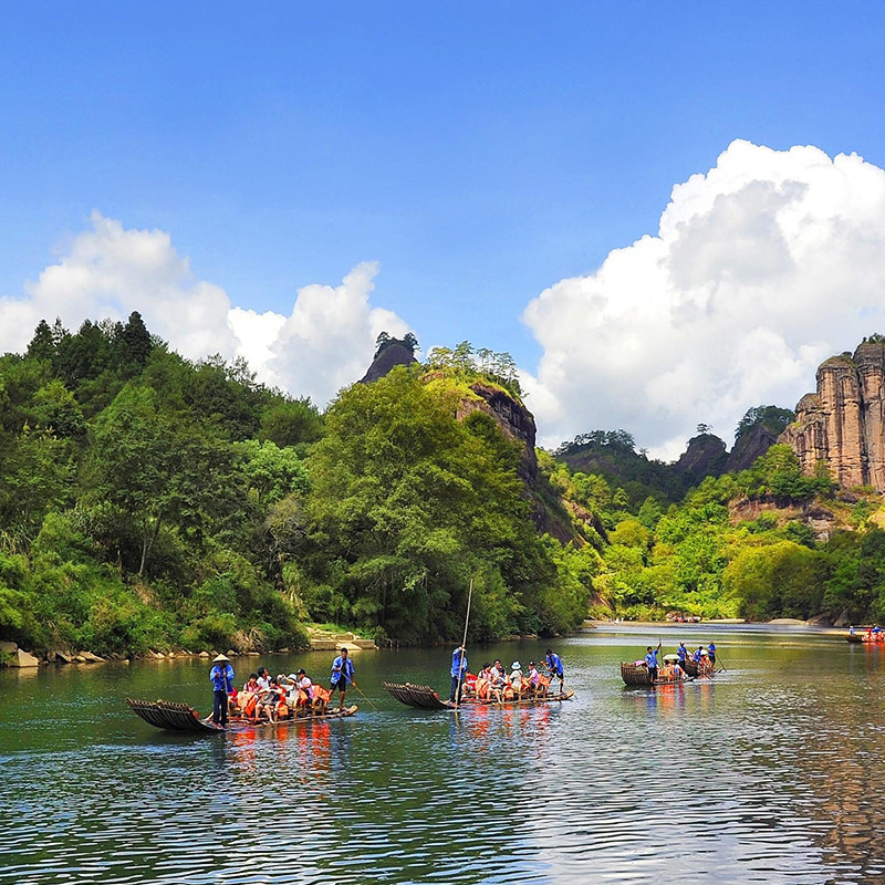 行程包含武夷山标志性体验——九曲溪竹筏漂流,乘一叶竹筏顺流而下,两岸丹山碧水、奇峰倒影尽收眼底。这一慢节奏的水上活动,恰为高强度差旅生活提供绝佳缓冲,让您在青山绿水间卸下疲惫,重拾身心平衡,是商务人士难得的疗愈时刻。
