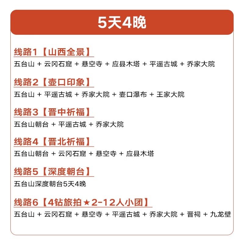 本线路支持1人独立预订,无需拼团等待,特别适合商务差旅人士在工作之余安排短途度假。无论您是独自出差至太原,还是希望利用周末时间深度体验山西文化,这条5天4晚的祈福之旅都能为您提供便捷、高效的出行方案,让差旅与休闲无缝衔接。