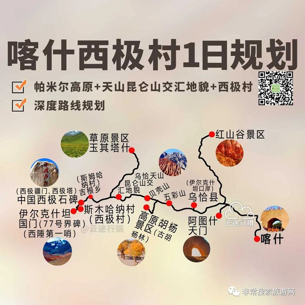 行程覆盖斯姆哈纳村、西极石碑与西极塔等标志性地点,正位于新疆喀什与克孜勒苏交界处,是出差途中不可错过的地理奇观。对于前往南疆执行公务的差旅人士而言,此线路可无缝衔接工作日程,利用半天或一天时间完成‘到访中国最西端’的旅行心愿,既满足打卡需求,又不耽误返程安排,高效且富有纪念意义。