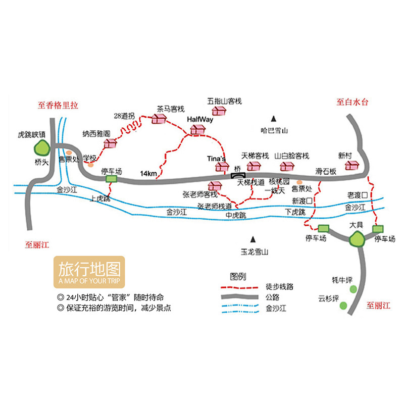 专为差旅人士设计的一日游行程,从丽江出发,深入虎跳峡高路徒步线,途经香格里拉部分精华区域,当日往返不耽误次日工作安排。全程交通接驳顺畅,导游精准把控时间节点,确保您在有限时间内收获最大化的自然与文化体验,兼顾效率与深度。