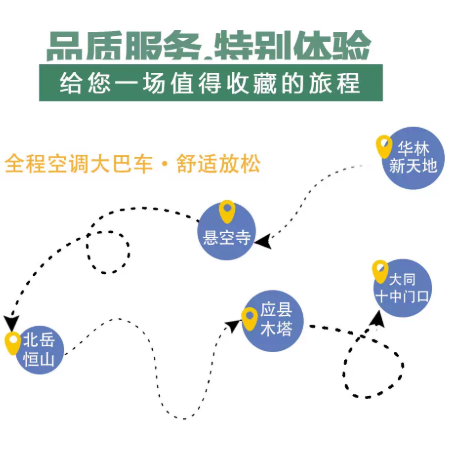 行程支持从大同或朔州两地灵活出发,覆盖晋北主要差旅节点城市。无论您因公抵达大同古城还是朔州能源基地,均可就近参团,减少交通接驳时间与成本,体现对区域差旅人群的精准服务设计,提升整体出行效率。