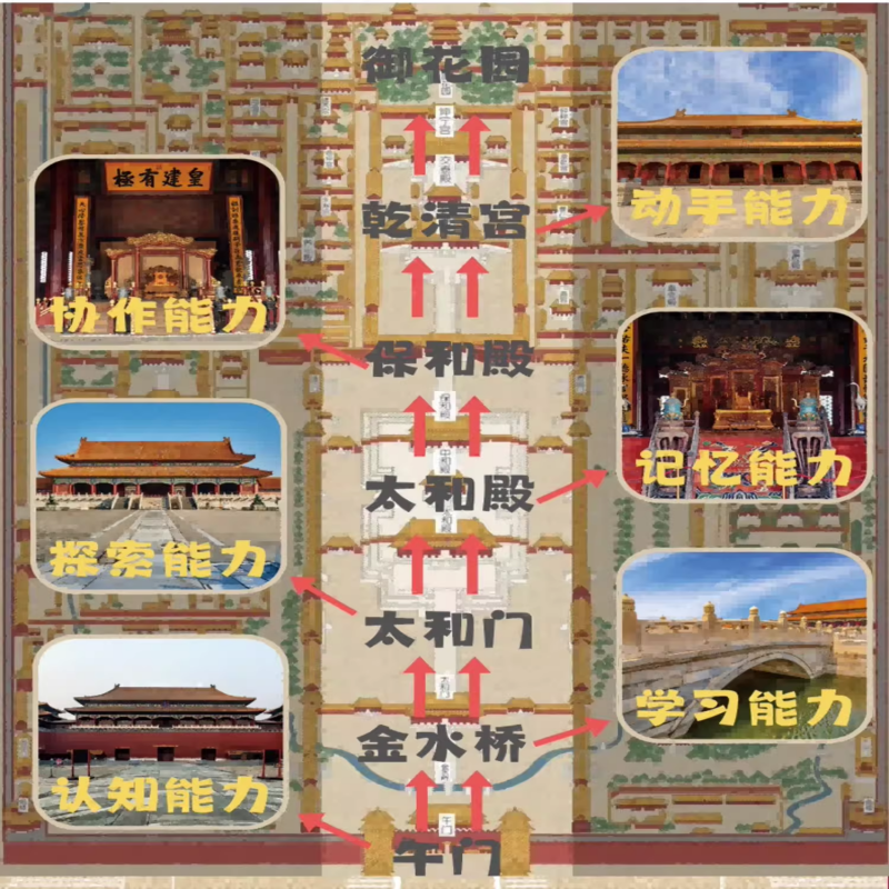 区别于普通观光,本产品以“宫研学”为核心,结合任务卡、互动问答、角色扮演等教学方式,引导孩子主动探索故宫的建筑规制、文物故事与礼仪制度。差旅中的短暂停留因此转化为高价值的学习经历,帮助孩子建立对中华文明的系统认知,提升差旅的家庭获得感。