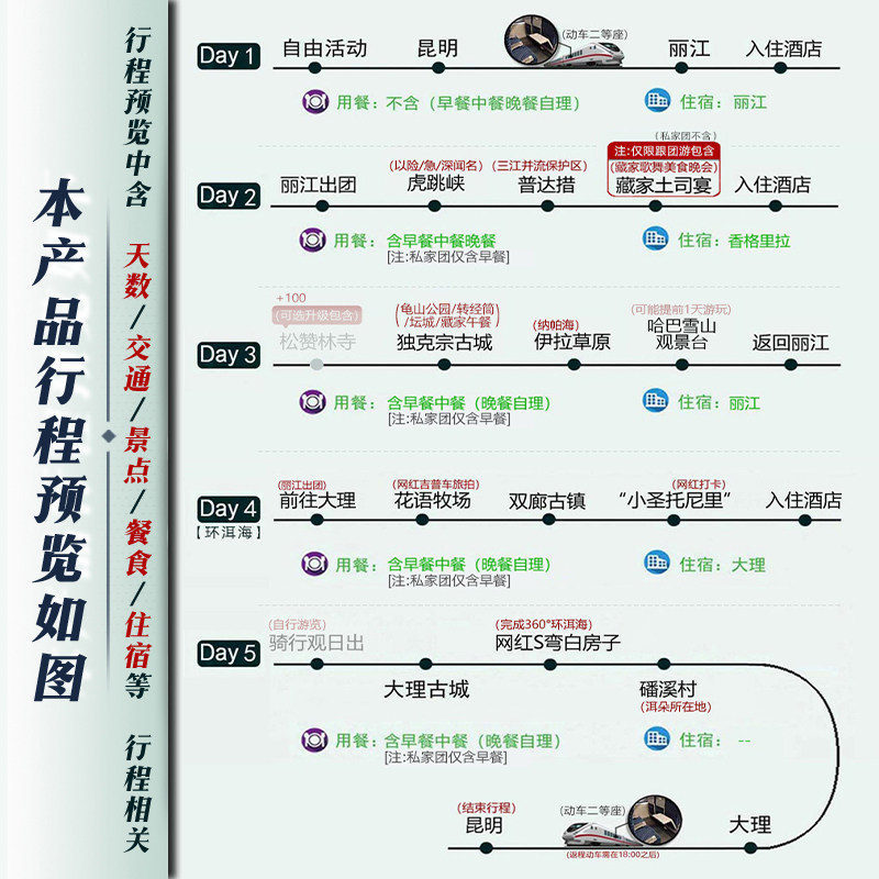 从昆明动车站接站开始,到大理、丽江、香格里拉各景点间交通,均安排专属小团车辆与司机,无需自行导航或叫车。对于携带笔记本电脑、样品等差旅装备的商务人士而言,此举极大提升安全性与便利性。同时避免因语言不通或路线不熟导致的时间浪费,确保行程高效可控。