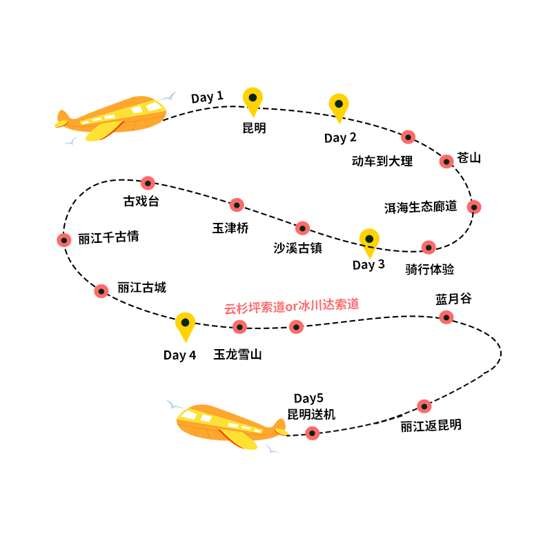 本行程以昆明为起点,无缝衔接大理与丽江两大热门旅游城市,特别适合商务差旅后顺道度假的旅客。5天4晚的私家团设计,既满足高效出行需求,又兼顾深度体验。从昆明高铁或自驾前往大理仅需2小时,再至丽江亦便捷通达,行程节奏张弛有度,让差旅人士在紧凑日程中轻松切换至休闲模式,实现工作与度假的完美平衡。