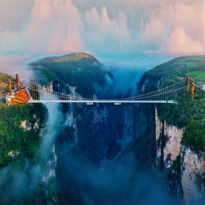 位于大峡谷的云天渡玻璃桥是全球最长高山玻璃桥,透明桥面下是300米深谷,为差旅途中注入刺激与新鲜感。对于长期伏案工作的商务人士,这不仅是一次视觉震撼,更是释放压力、重拾活力的独特体验,让旅程充满话题与回忆。