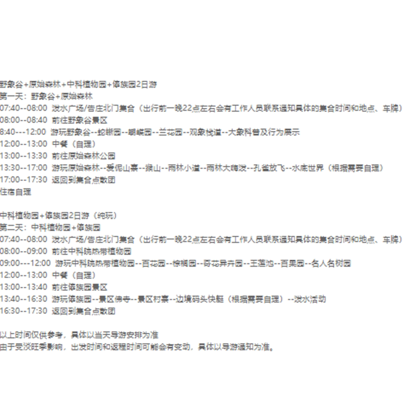 若您因公出差却希望顺道陪伴家人,本线路中的大象互动、孔雀放飞等环节极具亲子吸引力。虽为2日短途,但内容丰富且安全可控,适合携带孩子同行。差旅期间兼顾家庭时光,减少长期分离带来的遗憾,体现现代职场人对工作生活平衡的追求。