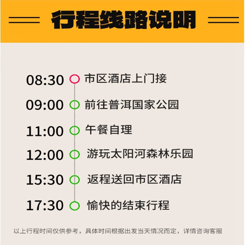 对于商务出差或独自旅行的旅客而言,普洱太阳河森林公园一日游支持单人预订,无需拼团等待,极大提升了行程安排的灵活性。无论是临时起意的小憩,还是紧凑差旅中的短暂放松,都能即订即走,省去协调多人时间的繁琐,让您的云南之行更高效、更随心。