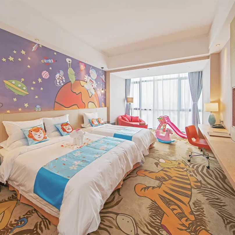 酒店设有卡通主题亲子房,搭配独立儿童乐园,让孩子在安全环境中尽情玩耍。家长可在房间内处理工作,或在公共区域放松休憩。这种‘带娃不累’的设计理念,特别适合需要兼顾差旅任务与家庭陪伴的父母。