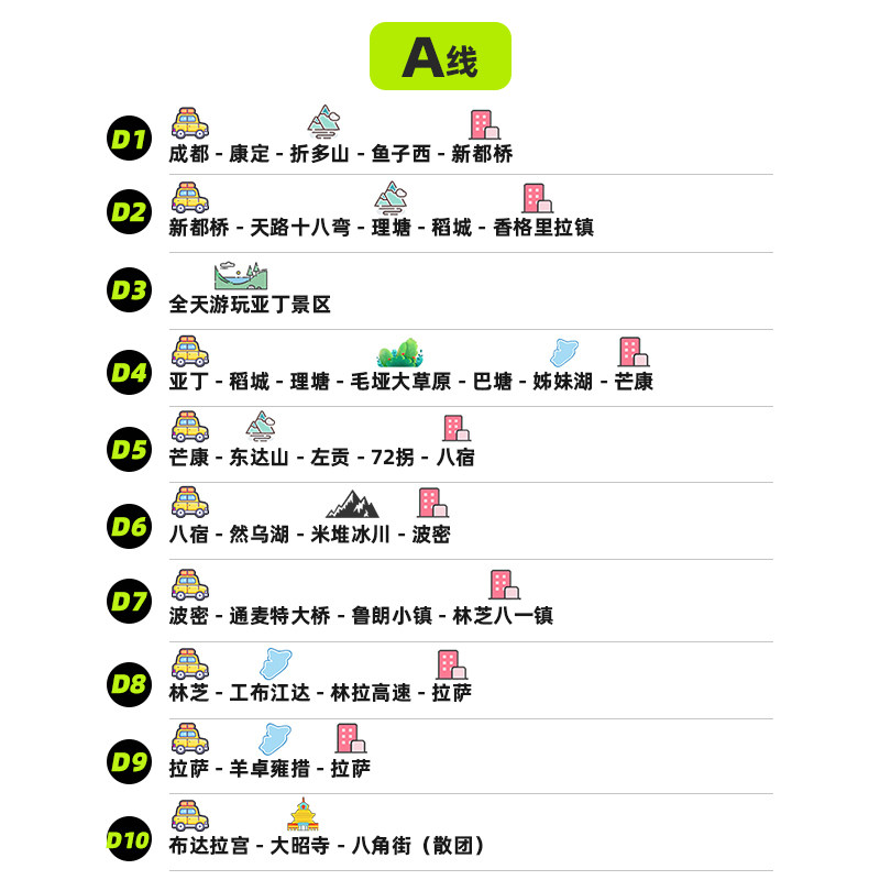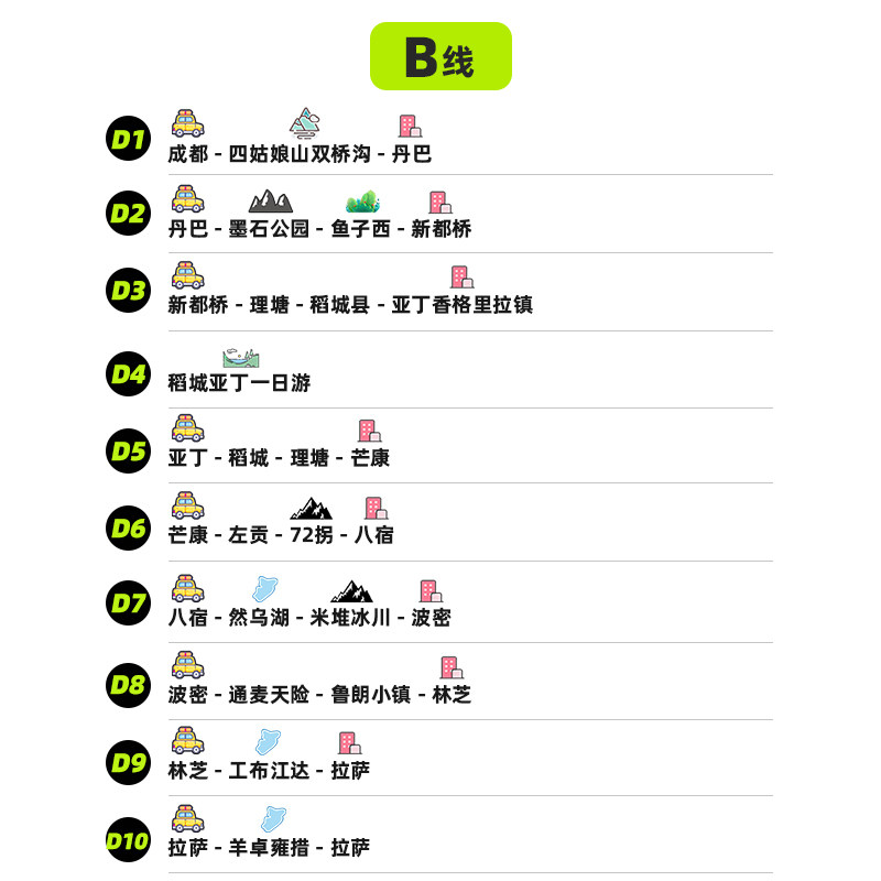 从成都出发,一次性打卡甘孜、林芝、拉萨三大目的地,涵盖雪山、圣湖、古寺、藏寨等多元景观。对于频繁往返西部的差旅人士,此举可大幅减少重复交通时间与成本,将碎片化出差整合为高效集约的深度行程,实现时间价值与旅行体验的双重优化。