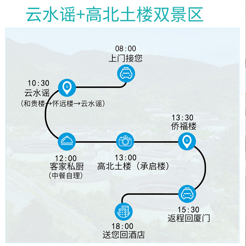 仅用一天时间,即可打卡云水谣古镇与永定土楼王两大标志性景点,完美契合差旅人士对“短平快”高品质体验的需求。行程经过精心优化,避免无效等待与绕路,确保在有限时间内获得最大文化与视觉收获,是高效利用周末或半天假期的绝佳方案。