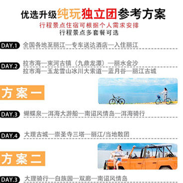 专为差旅人群设计的5天4晚行程,高效串联丽江古城、玉龙雪山冰川大索道、束河古镇等核心目的地,避免冗余路线。每日行程张弛有度,既满足商务人士对时间效率的要求,又融入深度文化体验。交通、门票、导览全包,让您从繁忙工作中抽身,无缝切换至轻松度假状态。