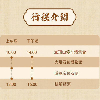 专为差旅人士设计的重庆大足石刻2小时深度人工讲解行程,由资深大咖导游带队,小团出行保障私密性与体验感。即使独自出差,也能轻松预订,无需拼团烦恼。行程聚焦世界文化遗产大足石刻,结合人文旅行与考古知识,让短暂差旅时光转化为沉浸式文化体验。无论是商务间隙还是周末延展,都能在千年石刻艺术中放松身心、汲取灵感。