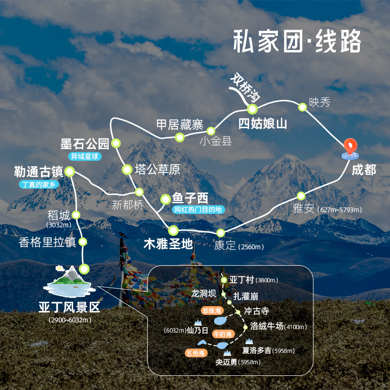【私家团】成都出发稻城亚丁旅游6天5晚四姑娘山新都桥-1单1团