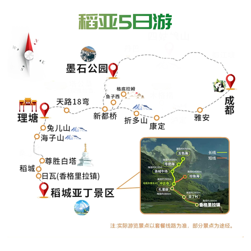 本行程专为差旅人士设计,从成都便捷出发,仅需5天即可深入川西秘境稻城亚丁。2-8人精品小团,灵活成行,1人亦可预订,极大提升商务出行后的休闲效率。全程优选酒店住宿,保障旅途舒适度,让高强度工作后的身心得到充分放松。行程涵盖鱼子西、亚丁景区等核心景点,无需复杂规划,一站式解决差旅+度假双重需求。