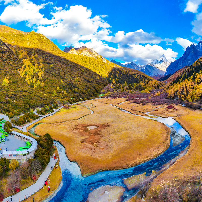 本产品以“川西秘境探索”为主题,将成都的现代都市感与甘孜的原始自然风光形成鲜明对比,打造一场身心转换的差旅体验。五日行程精心编排,涵盖雪山、草甸、湖泊、古寺等多元景观,帮助差旅人士快速脱离工作压力,在壮美自然中重拾灵感与活力,实现真正的“充电式旅行”。