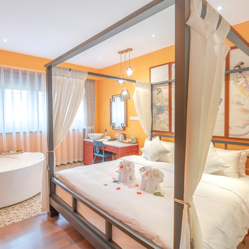 客栈提供复古圆床房与优雅大床房两种特色房型,均配备独立浴缸,营造私密浪漫氛围。即便是在差旅途中,也能为伴侣带来惊喜体验。房间设计融合国风美学与现代舒适,既适合情侣出游放松身心,也满足差旅人士对高品质住宿的基本需求,让短暂旅程充满仪式感。