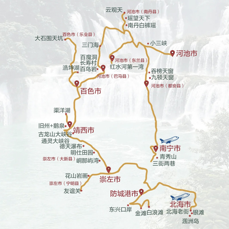 行程以南宁为起止点,作为广西交通枢纽,南宁拥有发达的高铁、航空网络,便于全国乃至国际差旅人士快速抵达。无论是结束会议后直接开启假期,还是在返程前预留一段放松时光,都能实现交通无缝衔接,省去中转奔波,最大化利用有限的差旅空档期。